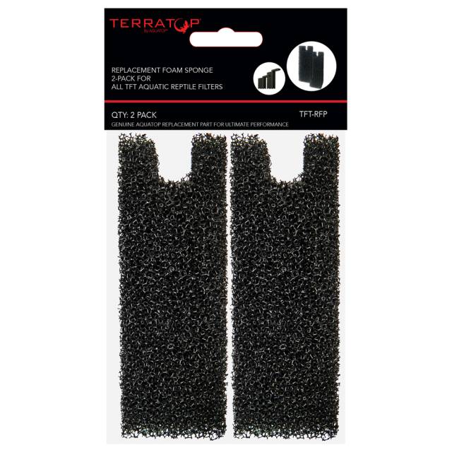 The TERRATOP Replacement Foam Sponge 2-Pack is designed for the TFT-10 and TFT-35 Aquatic Reptile Filters, serving as the mechanical filtration layer in their 3-stage system. Users can easily remove the old sponge and insert a new one into the filter’s media basket, completing the process in minutes with minimal tank disruption.