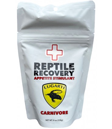 Lugarti’s Reptile Recovery – Carnivore is a complete, easy-to-digest, nutritional supplement & appetite stimulant that boosts energy while providing gentle nourishment and vital hydration. It allows you to provide important critical care support for animals that are sick, injured, stressed, or malnourished.